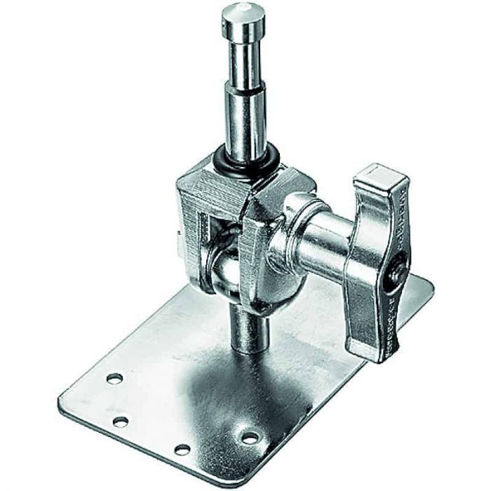 The Avenger F810 Baby Plate with 5/8″ Swivel Spigot is a steel plate with a swiveling 5/8″ Baby pin with a large T-handle that allows precise positioning of a light or accessory. The F810 has eight anchor points for nails or screws. Hardware is not included.