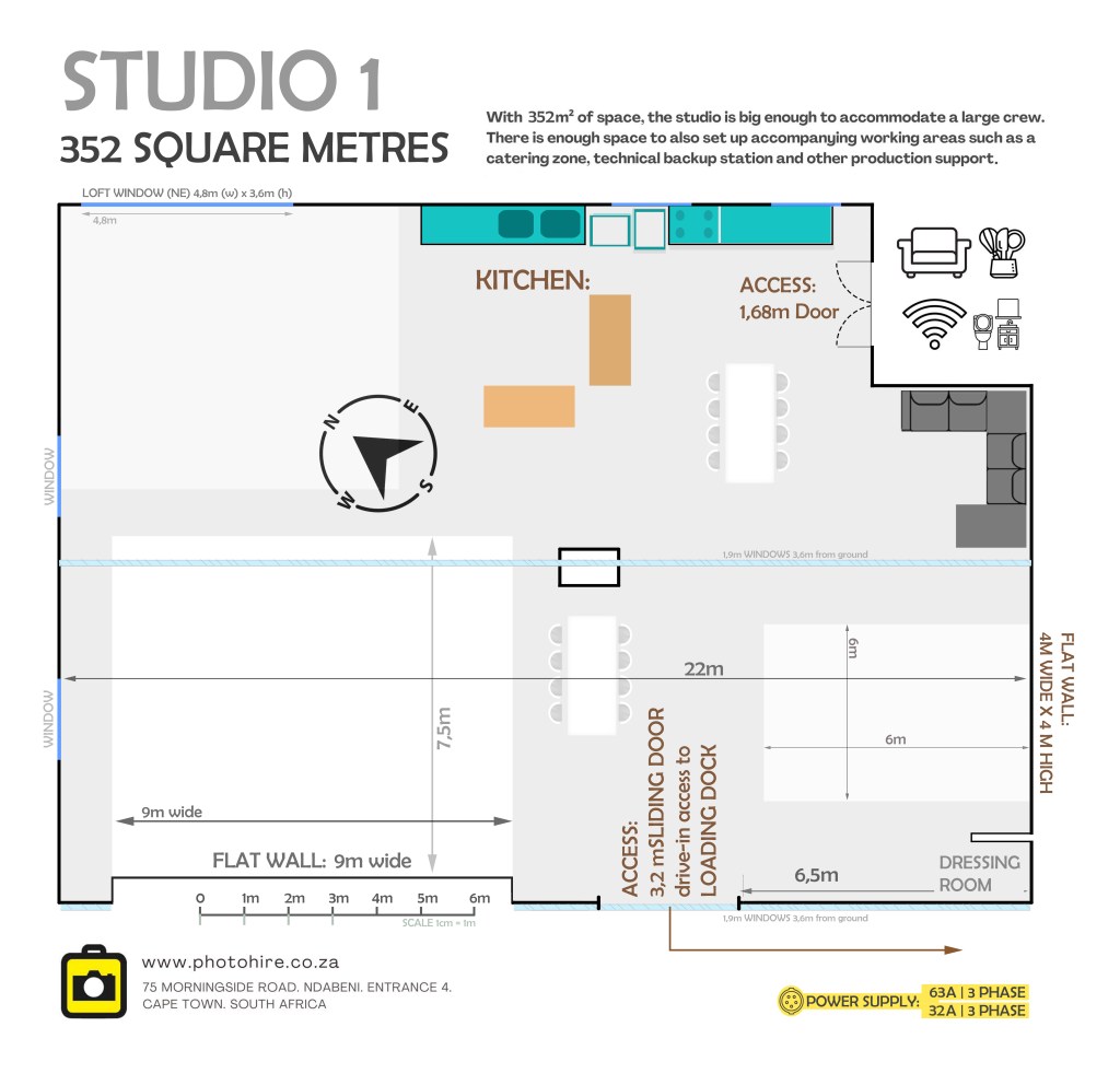 Photo Hire Studios is a brand-new space in the trendy light industrial zone of Ndabeni. More than just your average studio, this creative hub is the ultimate location for film, tv, video and photographic productions. Close to the prominent Sunrise Circle intersection, this chic and modern location offers you all the comforts and luxuries to rival top international studios. Although newly renovated, the studios retains its original industrial appeal, making it a versatile blank canvas.